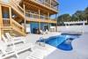 Mid Level: 2 King Master Bedrooms with TV, private bathrooms and deck access (one deck is a private deck). Bedroom with 2 Singles, flat-screen TV and private deck access that shares a Jack-n-Jill full bathroom with a Bedroom with 2 Bunk Sets, flat-screen TV and deck access. Half bathroom between the mid and top levels.