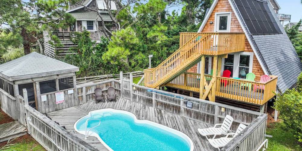 A-Frame of Mind is located in Salvo on Hatteras Island and is a great option for your fall getaway. This unique house is 3 bedroom/2 bathroom and is perfect for an intimate vacation with your loved ones. The private pool can be heated so you can still enjoy it in fall and you have a hot tub you can enjoy as well! This home is packed with amenities and ready to host you this autumn!