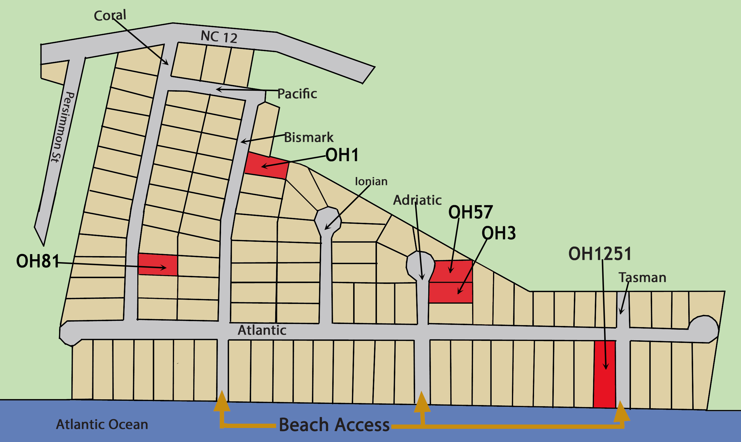 Just north of Corolla Village, The Currituck Beach Lighthouse, and The Currituck Heritage Park, you will find this quiet community that is part of a natural preserve. Ocean Hill is an oceanside community with rolling dunes, large lots, and wide beaches. Some homes in the Ocean Hill community may still be on private wells and septic systems. Many of the homes offer private pools and intriguing architecture and all have access to the beautiful wide sandy beaches.