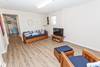 Ground Level: Exterior amenities include an outside shower, covered patio, 2 picnic tables, sun deck and a gas grill. Inside you'll find a den with a flat screen TV and a nook with arcade video game. Bedroom with 2 Singles and a full hall bathroom. Laundry area with washer, dryer and utility sink.