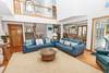 Mid Level: Bright great room with floor-to-ceiling sound view windows, Smart TV, gas fireplace; open dining for 8; kitchen bar (3), breakfast nook with seating for 4; half bath; King Master En Suite with TV, whirlpool tub & private balcony.