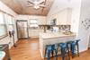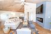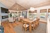 Top Level: Great room with TV/DVD, Queen Sleep Sofa, juniper cathedral ceilings and wood fireplace, kitchen with counter seating 4, dining room seating 8, and a Queen Bedroom with semi-private full bath with whirlpool tub.