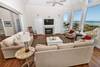Top Level: Features the great room with ocean views, gas fireplace,  large smart TV and Bluetooth sound system. The spacious dining room table seats 12 and the breakfast bar seats 6. The gourmet kitchen (recently updated in 2023) features quartzite counter tops, double dishwashers, double ovens, and an icemaker. The kitchen is well equipped with all of the cookware and gadgets you could ever imagine, serving dishes, appliances and much more. The Sunroom has comfortable seating and dining area seating 6. The oceanside deck is spacious and features multiple rocking chairs and a dining table that seats 8. The oceanside deck further entertains with its own Bluetooth sound system (separate from all others), The Soundside deck that can be accessed from either the kitchen or the Sunroom has a seating area with Adirondack chairs to enjoy those sunsets over the sound, a gas grill, a bistro table for 2, rocking chairs and it's own Bluetooth sound system (separate from all others). The King Master Bedroom Suite with Roku TV, its own Bluetooth sound system (separate from all others), private deck and private oversized bathroom with a whirlpool tub and a separate shower.